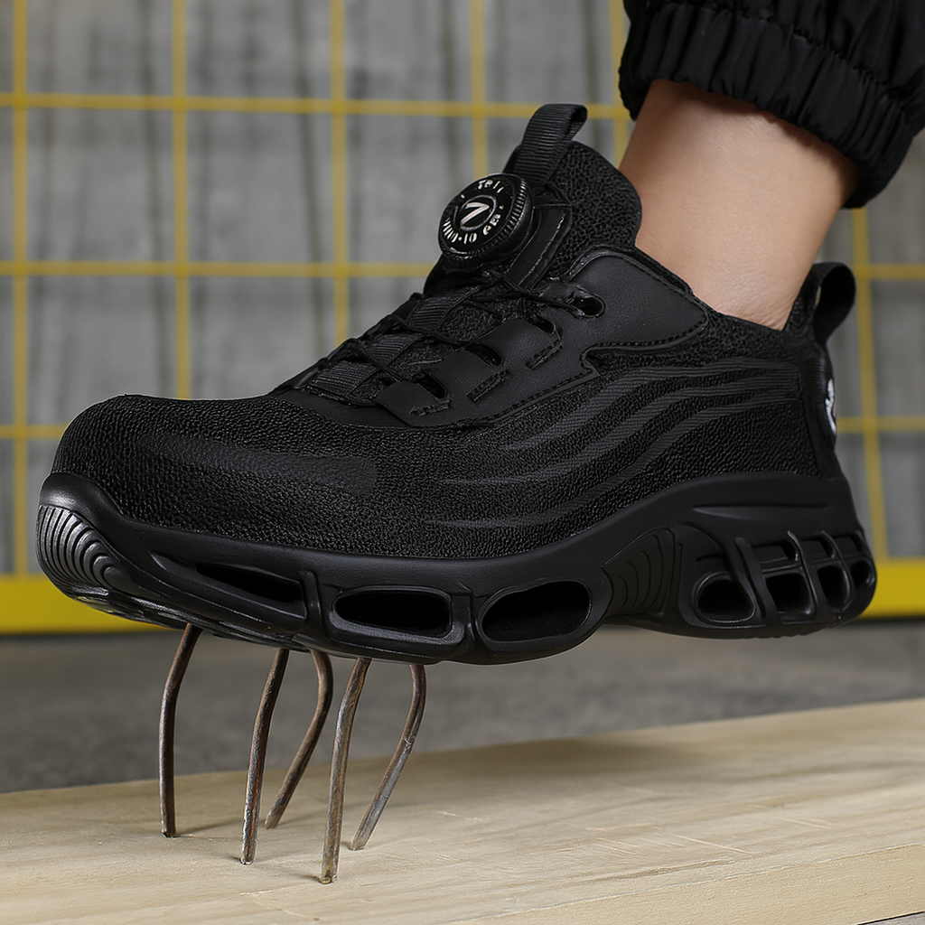 סוליה עמידה במיוחד המונעת חדירת מסמרים וחפצים חדים, עם טכנולוגיית אחיזה מתקדמת המותאמת לשטח רטוב, חלק או מאובק לשמירה על יציבות בכל מצב.